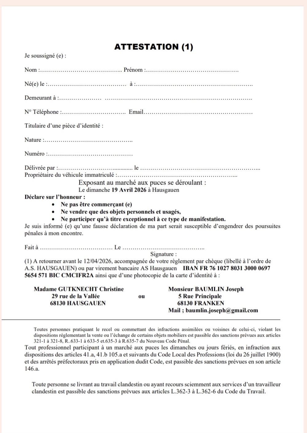 GRAND MARCHÉ AUX PUCES Hausgauen 19/04/26