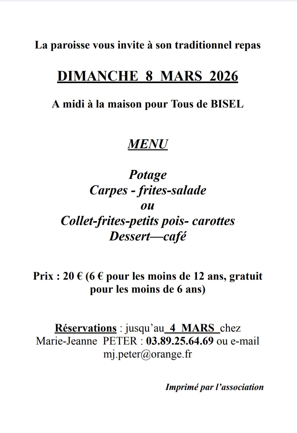 Repas Paroissial Bisel 08/03/26