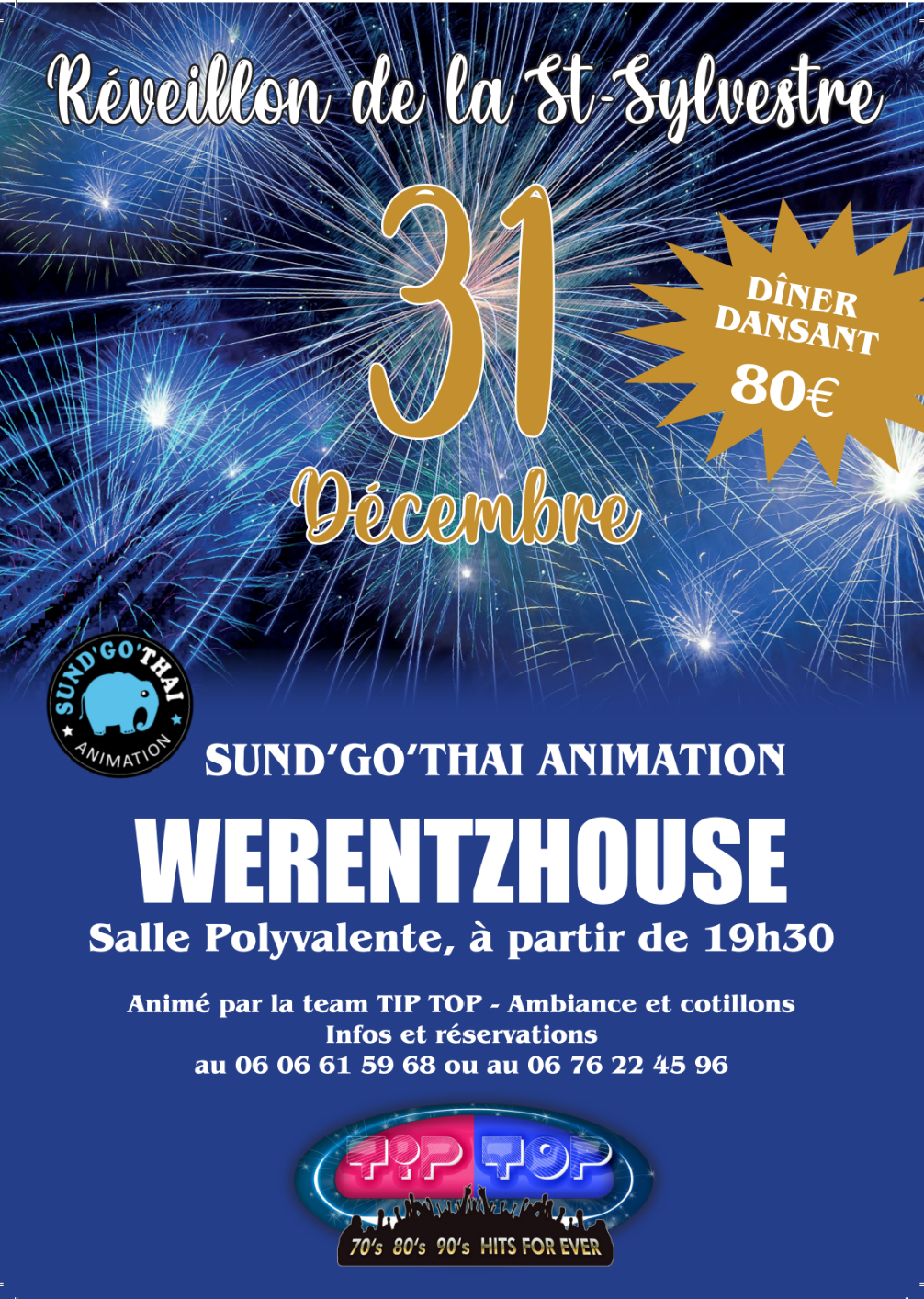 Réveillon St-Sylvestre 2025 Werentzhouse 31 décembre 2024 et 01 janvier 2026